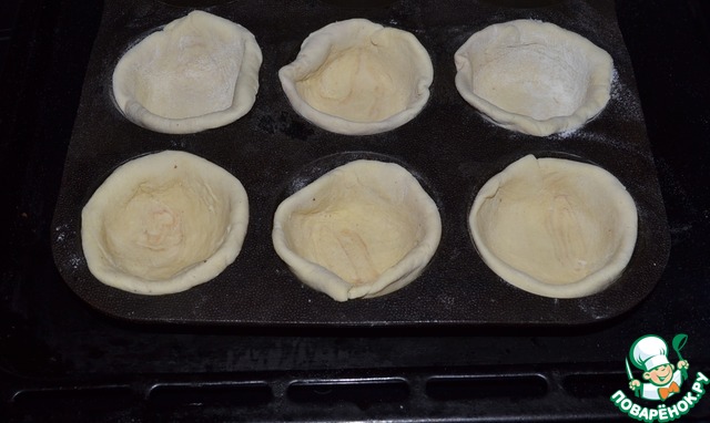 5. Теперь получившиеся лепешки укладываем в формочки и ставим выпекать в предварительно разогретую до 180 гр. духовку на 7-10 минут.