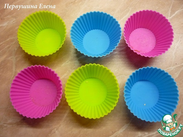 Подготавливаем формочки-кексницы ( у меня силиконовые, поэтому маслом я их не смазывала).