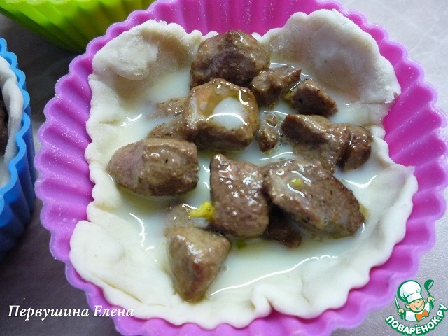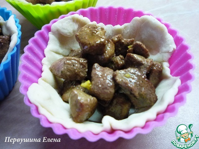 Выкладываем обжаренную печенку в "корзиночки", оставив сверху свободными 0,5 см.