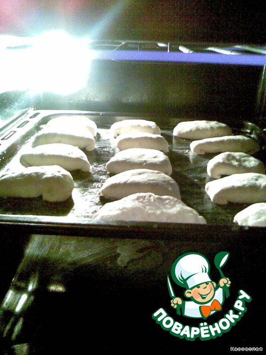 сверху можно смазать медом: 1 ч. л. меда и 2 ч. л. воды - для золотистой корочки