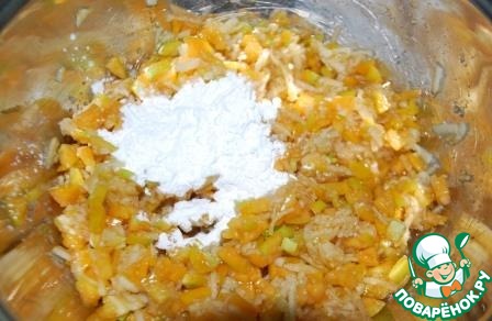 5. сахар и крахмал. Перемешиваем. Если сока в начинке будет слишком много, то можно ее слегка подварить, чтобы загустела.