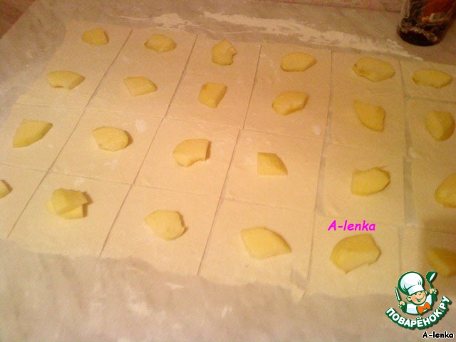 | очень простые слойки с начинкой, готовятся быстро, съедаются еще быстрее))) |