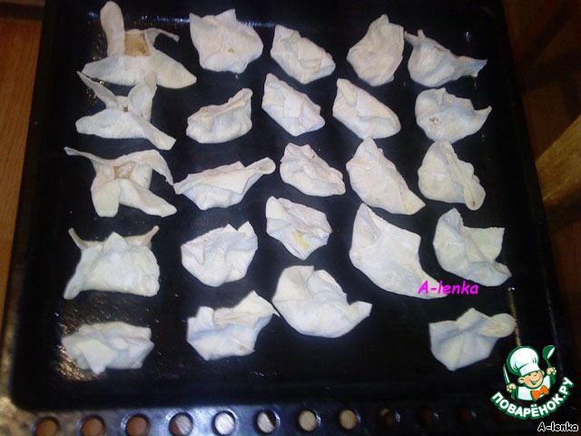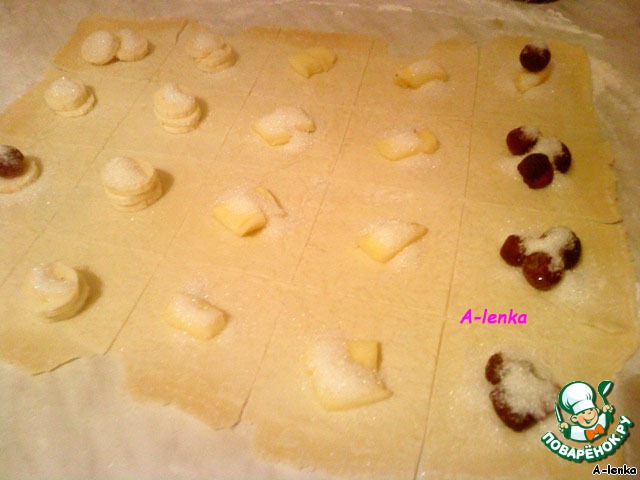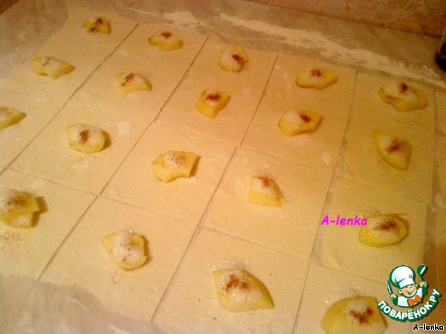 Можно положить кусочки банана с яблоком, можно вишню (но только не свежую, у меня она потекла и подпортила слоечки).