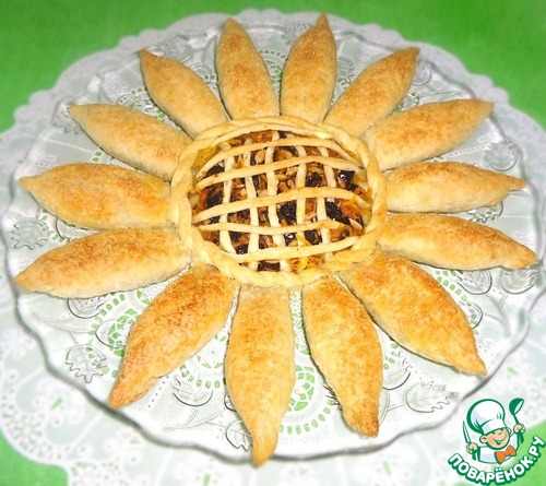 | Предлагаю рецепт очень вкусных слоек с тыквой, изюмом и семечками и вариант подачи в виде подсолнуха. |