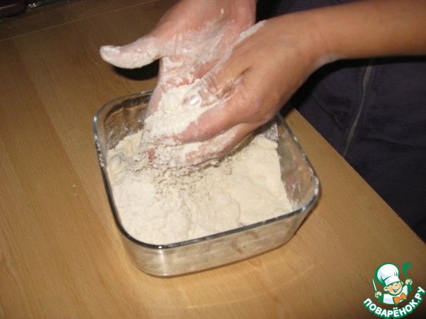 Все продукты складываем в миску и хорошо перетираем в крошку.