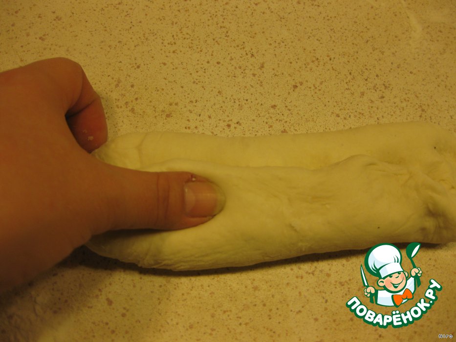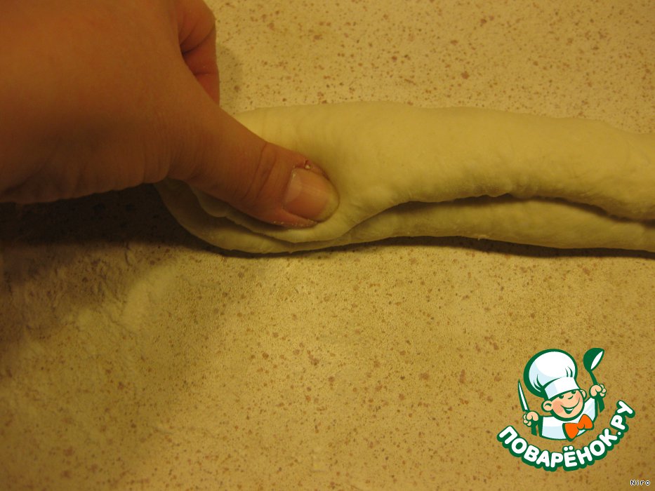 И наконец, складываем наш батон вдоль пополам, запечатывая его, опять же.