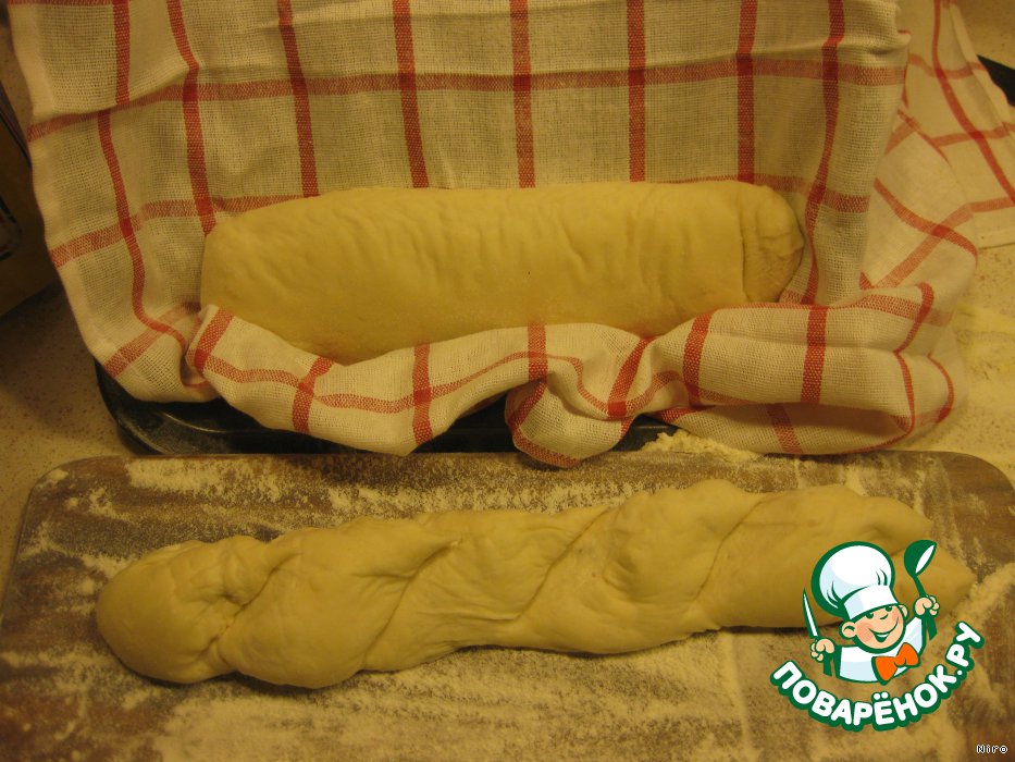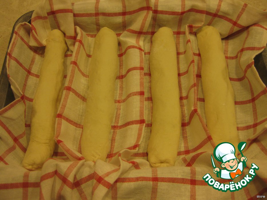 Укрываем их полотенчиком и оставляем в покое минут на 45-60, пока распоясавшиеся багеты не увеличатся в объеме почти вдвое.