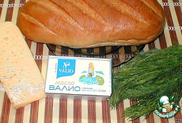 Сливочное масло размягчить, добавить сыр и очень мелко нарезанную зелень (например, укроп).