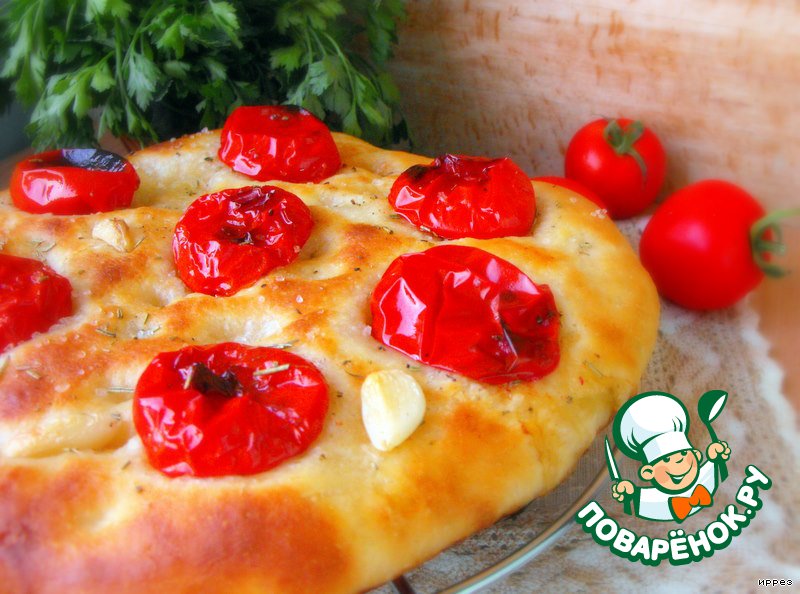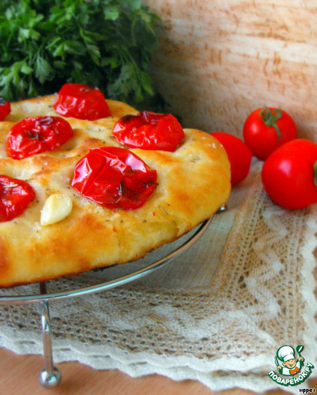 Картофельная фокачча с печеными помидорами