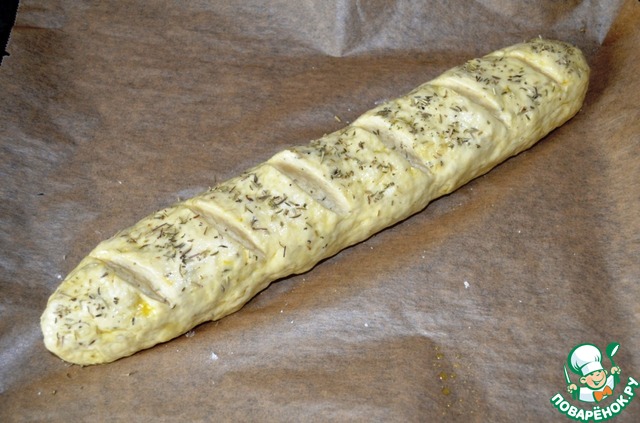Сформировать не сильно тонкий багет, смазать его оливковым маслом.