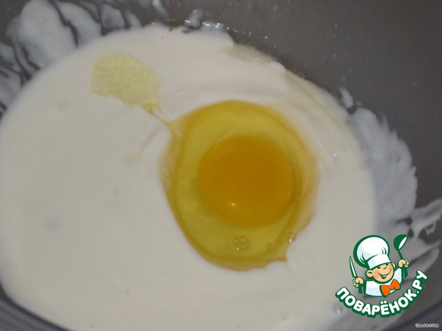 В йогурт добавить яйцо, все слегка размешать.