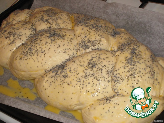 Косу смазать яйцом, посыпать маком.