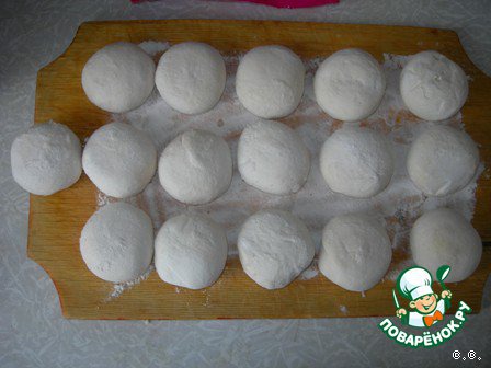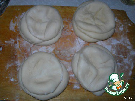 Тесто оттаяло, сделаем из него 4 лепешки.