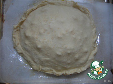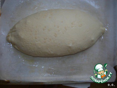 Подтыкаем края вниз и формируем буханку. Натыкаем вилкой через все слои по всей поверхности и смазываем водой.