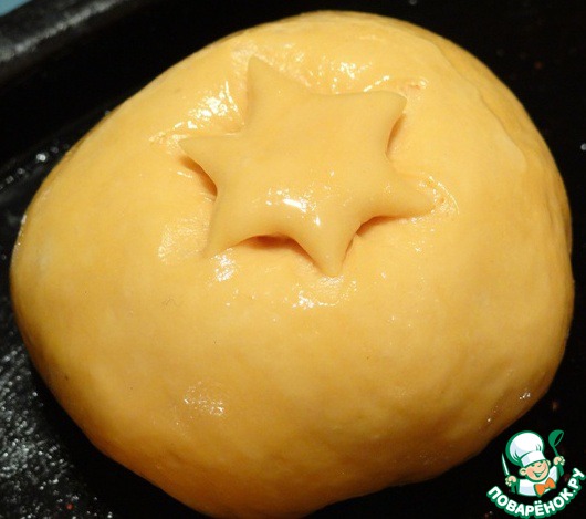 Разогреваю духовку до 200 градусов. В это время с помощью ножниц на самой верхушке изделия делаю "звездочки".