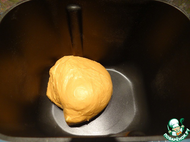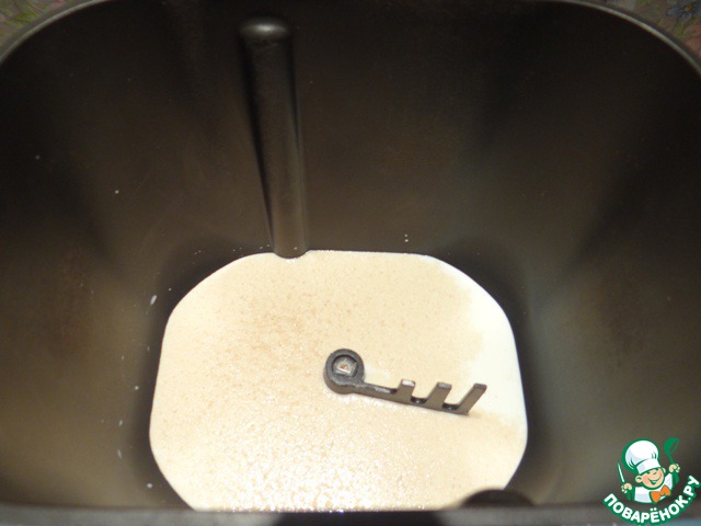 Помещаю ведерко в хлебопечку, включаю режим замеса теста.