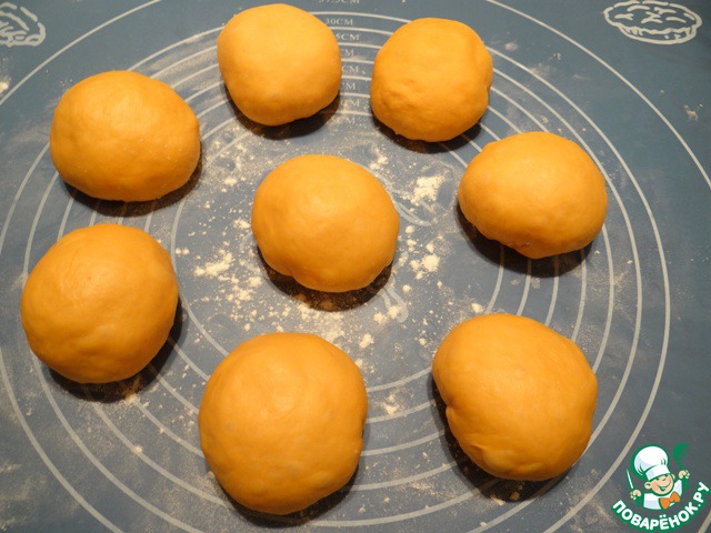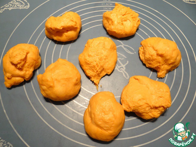 Делю тесто на 8 равных частей.