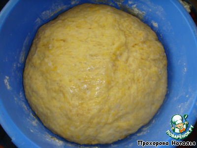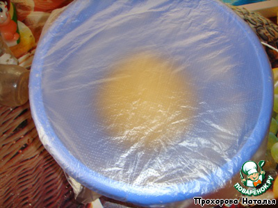 Скатать из теста шар, обмазать растительным маслом. И поставить подходить (часа на 2-3), накрыв пленкой и поставив в теплое место.
