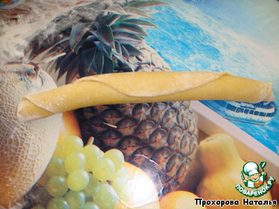 Раскатать из теста прямоугольники, на слегка присыпанном мукой столе.