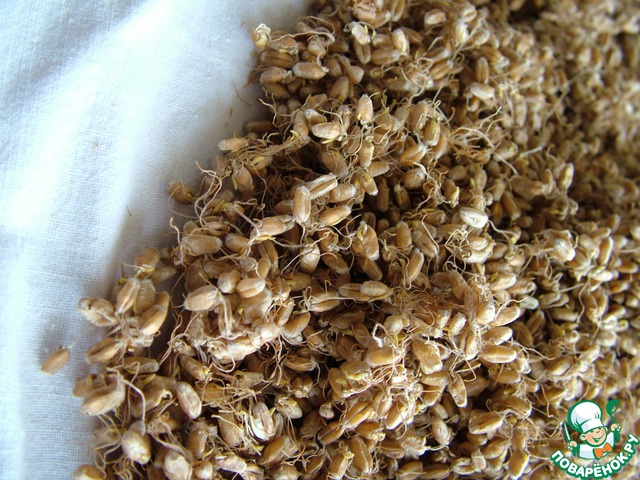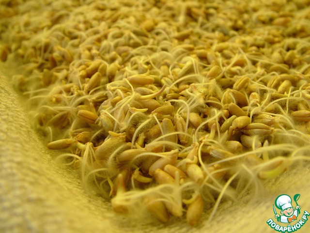 Вымоченное зерно высыпаем тонким слоем на влажную ткань и накрываем также мокрой тряпочкой. Зерно нужно поставить в нежаркое проветриваемое место на 2 суток. Периодически увлажнять из распылителя или подливать немного холодной водички.