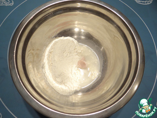 Сначала приготовим закваску - смешаем просеянную муку, воду и дрожжи,
