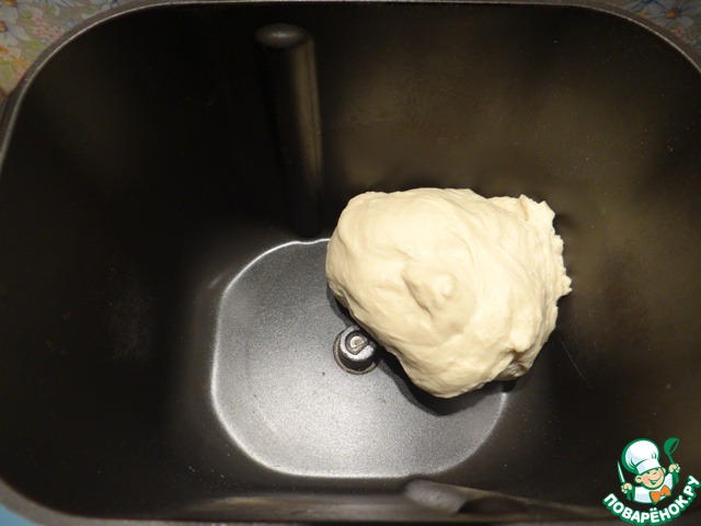 Помещаю ведерко в хлебопечку и включаю режим замеса теста.