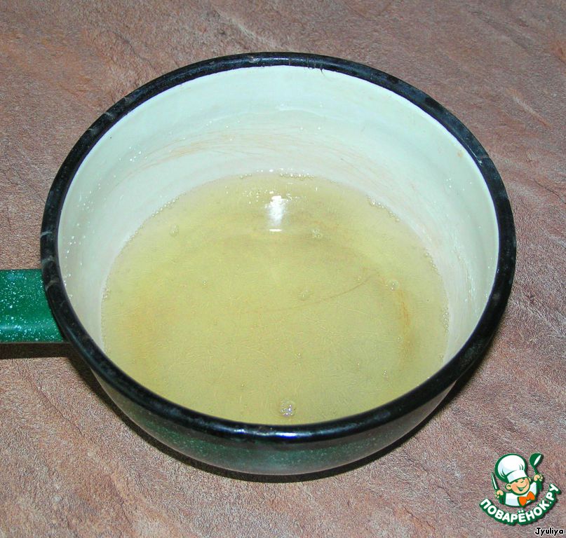 Сварить сироп: 0,5 стакана сахара + 50 мл воды. Остудить.