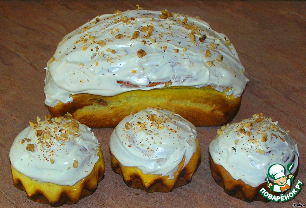 Помадкой смазать готовую булку, сверху можно посыпать орехами.