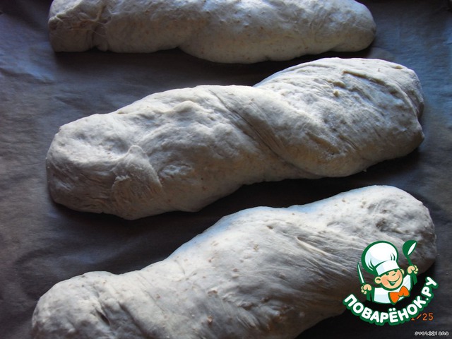 Оставьте на 20 минут на листе без покрытия полотенцем. Сразу же включите духовку прогреваться на 250°С. Через 20 минут тесто снова немного увеличится в размере.