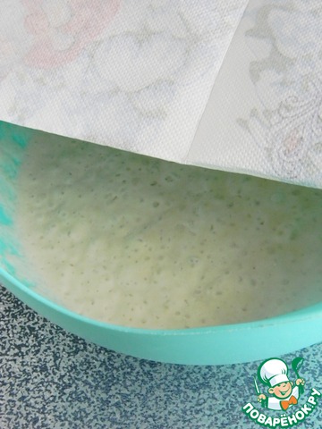 Переложить тесто в миску, накрыть и убрать в тепло на час, для подъёма.