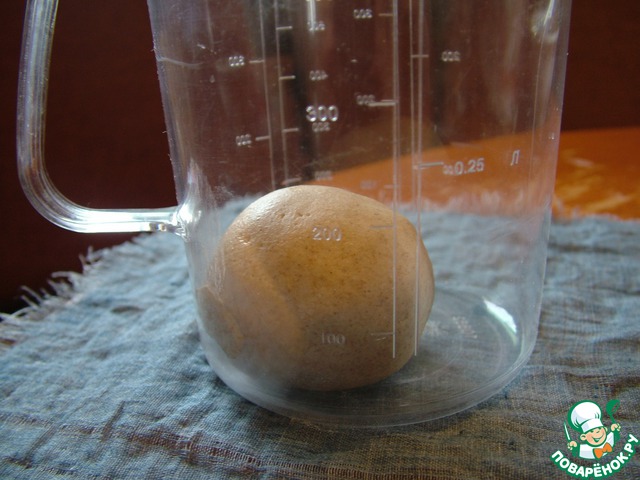 ДЛЯ ЗАКВАСКИ: 10 г. ржаной закваски, 40 г. сеяной муки, 25 г. воды. Смешайте закваску и оставьте бродить 6 часов при температуре около 30 °С.