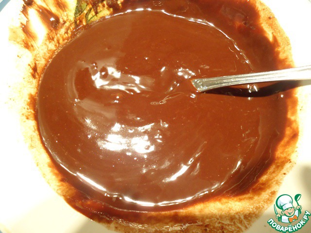Темный шоколад и сливочное масло растапливаю в микроволновке, размешиваю.