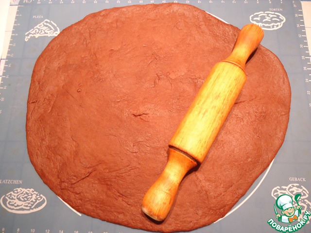 Аккуратно, как можно плотнее, сворачиваю тесто рулетом.