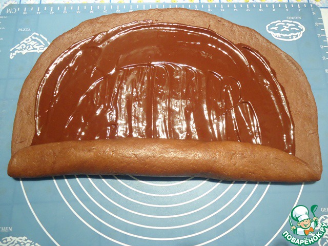 И смазываю шоколадно-масляной массой, отступая от края примерно 1,5-2 см.