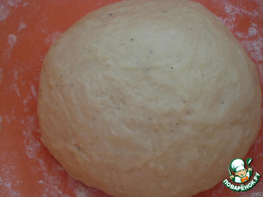 Подробно у меня описано в «Дарьиных пирогах» http://www.povarenok.ru/recipes/show/34636/. Тесто должно получиться нежное, как мочка уха. Накрываем и ставим в теплое место, на один час. Тесто должно увеличиться вдвое.