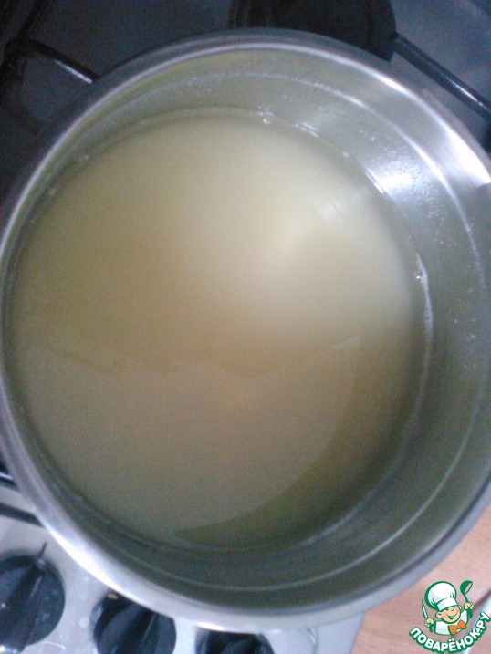 Для начала отчистим и отварим картофель в 600 мл воды. После закипания необходимо проварить его минут 15, для насыщения нашего "бульона". После этого картофель необходимо потолочь блендером или толкушкой до пюреобразного состояния и перемешать с оставшейся жидкостью от картофеля. Оставляем остывать до теплого состояния (около 30С).
