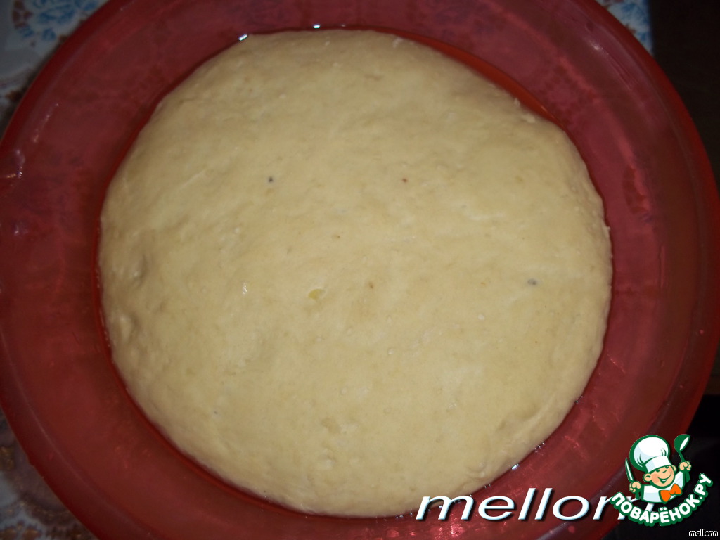 Тесто поставить в теплое место примерно на 1 час (должно увеличиться примерно в 2 раза).