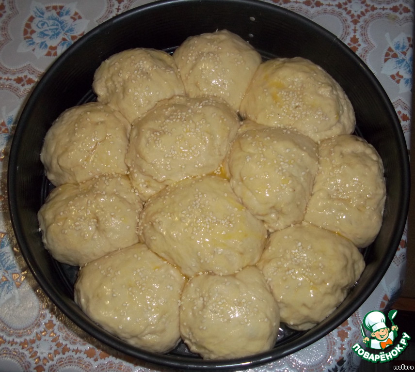 Руками, смазанными растительным маслом тесто разделить на «шарики». Шарики уложить в смазанную маслом форму