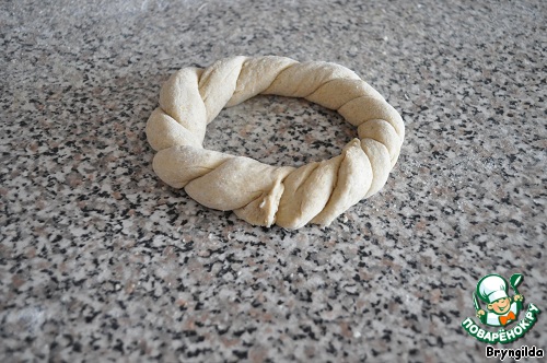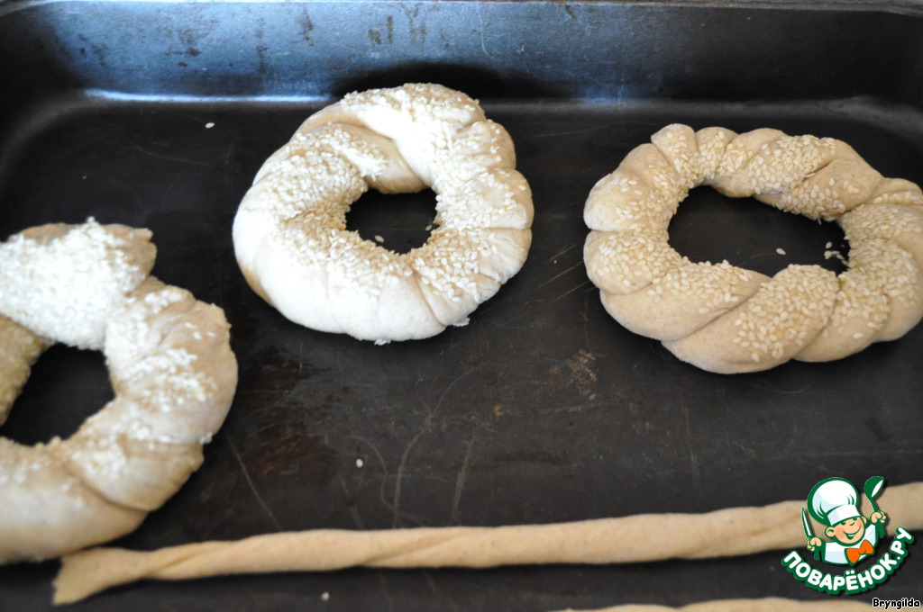Сделаем калач, смажем желтком с водой и макнем в кунжут.