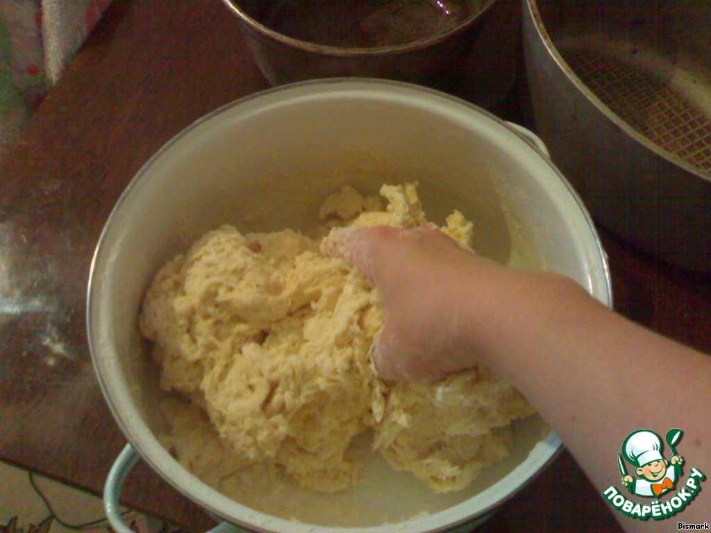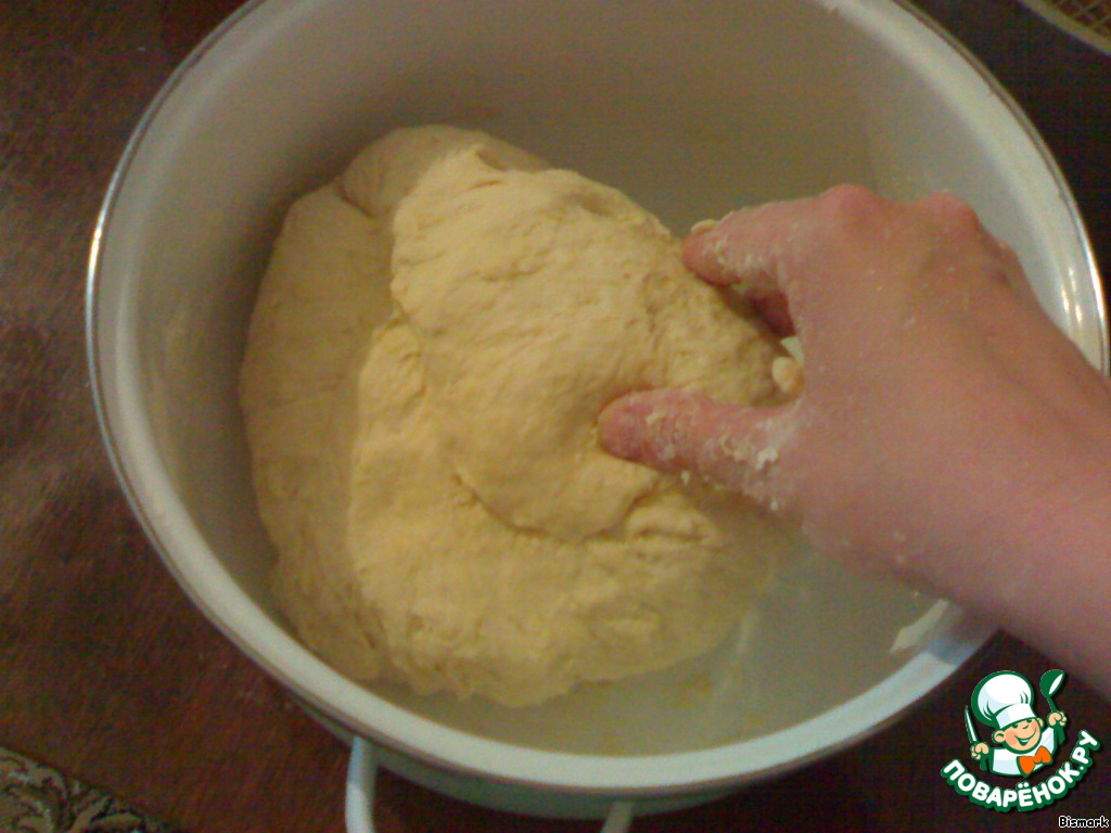 Вымешиваем до полного отлипания теста от руки. Если все-таки тесто сильно вязкое - добавляем буквально по чуть-чуть, небольшими щепотками муку, но не переборщите - когда много муки тоже плохо.