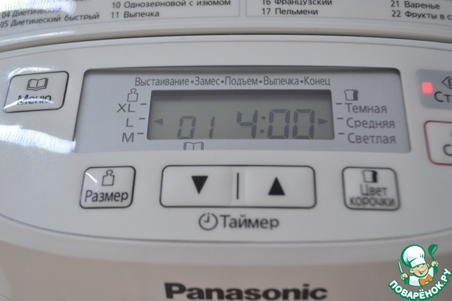 Выбираем режим "Основной хлеб", размер - L, цвет корочки - средний.
