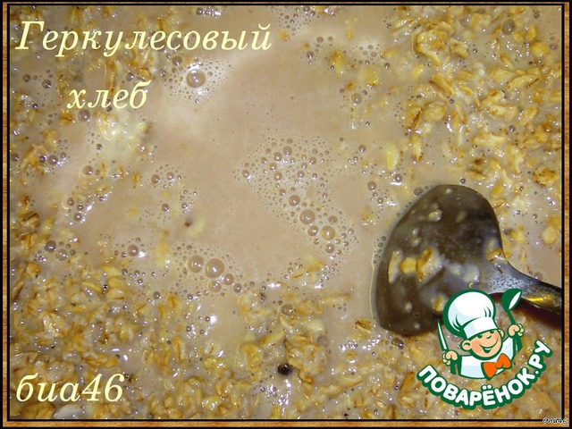 Зальем хлопья горячей водой и оставим на 20 минут,для размягчения хлопьев.,охладить до 38 гр Ц.