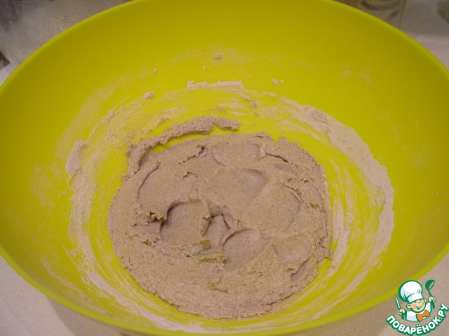 ДЛЯ ТЕСТА: вся опара, 200 г. ржаной муки, 150 г. муки 1 с, 8 г. соли, 30 г. патоки (или черного тростникового сахара), смешайте в однородное липкое тесто (вымешивать ржаное тесто не нужно) и оставьте, накрыв пленкой, для ферментации 1,5 часа при температуре 28-30 °С.