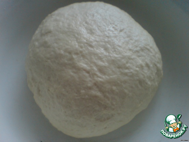 Замешиваем тесто, которое месим до тех пор, пока оно не станет отлипать от рук и не будет гладким и однородным. Положить в слегка смазанную маслом миску, накрыть и поставить в теплое место.