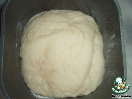 Итак, замешиваем дрожжевое тесто. Я это делала в хлебопечке.(на режиме тесто). Тут же, после окончания цикла, тесто у меня и подошло. Рецепт значения не имеет. Можно взять рецепт теста. которое вы знаете и часто делаете. Я за основу взяла рецепт простого белого хлеба из своей книги рецептов для ХП.