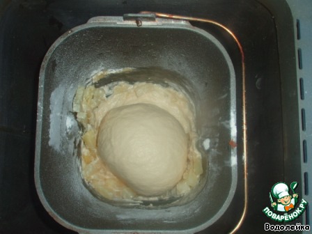 по сигналу хлебопечки забросить ананасы (предварительно из отцедить), и вот тут смотрим за колобком и при необходимости добавляем муку. На фото видно, что колобок стал жиже и я досыпала муку.