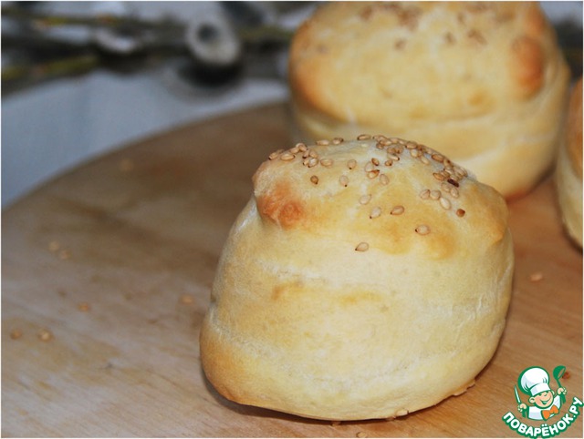 Рецепт очень прост. Все ингредиенты (кроме кунжута) смешать одновременно, вымесить тесто, накрыть полотенцем и поставить в тёплое место на 1,5 часа.