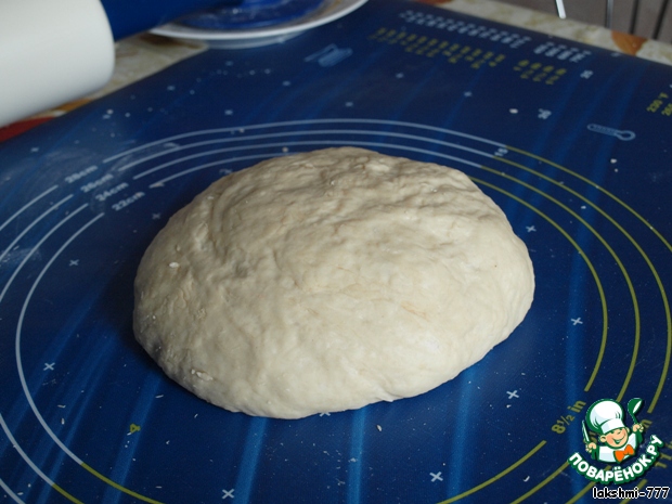Кастрюлю смазать растительным маслом, переложить в нее тесто, даже если оно будет немного липнуть к рукам - ничего страшного. Тесто накрыть, поставить в тепло на 1 час, пока оно не увеличится вдвое.(Сейчас я не смазываю посуду, в которую кладу тесто, - пользуюсь пластиковой и в ней не пристаёт).