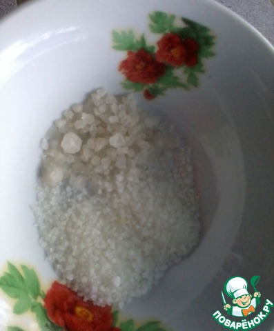 Делаем тесто: взвесить соль (я брала морскую, она довольно крупная) и сахар.