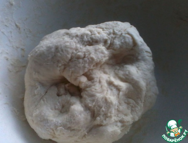 Получается очень тугое тесто, которое надо вымесить до гладкости, примерно 10мин.